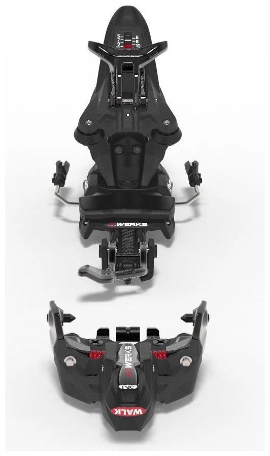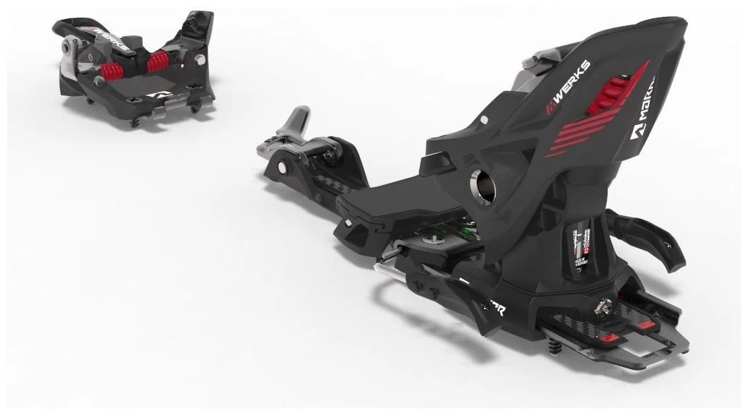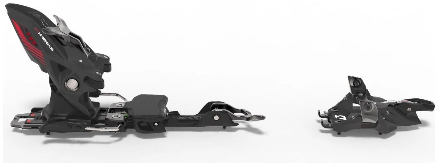 De nieuwe Kingpin M.Werks van Marker levert een perfecte downhill performance op een lager gewicht dan zn gelijknamige voorganger. Deze binding is een reflectie van alle kennis die Marker afgelopen drie jaar, tijdens het ontwikkelen van de Alpinist, heeft verzameld. Met een gewicht van slechts 620 gram, is dit de lichtste Kingpin binding ooit! De op de afdaling georienteerde touring binding is gemaakt van lichtere, maar nog steeds topkwaliteit, materialen, wat betekent dat je 110 gram minder (15%) onder de voet hebt. Toch heeft dit gereduceerde gewicht totaal geen invloed op de features die de binding performance, veiligheid en comfort geven. Het hielstuk maakt een directe en efficiente krachtoverdracht mogelijk, wat resulteert in een betere controle van de ski tijdens de afdaling. Een ander nieuw feature: lichtere XL Power Transmitters, die frictie tussen de skischoen en de binding elimineren en zorgen voor een soepele release. Op de Kingpin M.Werks zitten de Power Transmitters aan de uiterste zijkanten van de schoen, waardoor ze voor een optimale krachtoverdracht zorgen. Het hielstuk biedt tevens verschillende features voor een verbeterd comfort. Wat voor beginners erg handig is: deze binding kan tijdens het klimmen op 0, 7 of 13 graden gezet worden, wat het klimmen makkelijker maakt. Dankzij de nieuwe ergonomische hendel switch je eenvoudig tussen walk en ski mode. De binding kan over de horizontale as tot 28 millimeter versteld worden, om zo bij vrijwel elke skischoen te passen. De boorplaat is 38 millimeter breed, wat zorgt voor een uitstekende krachtoverdracht naar de ski tijdens de afdaling.