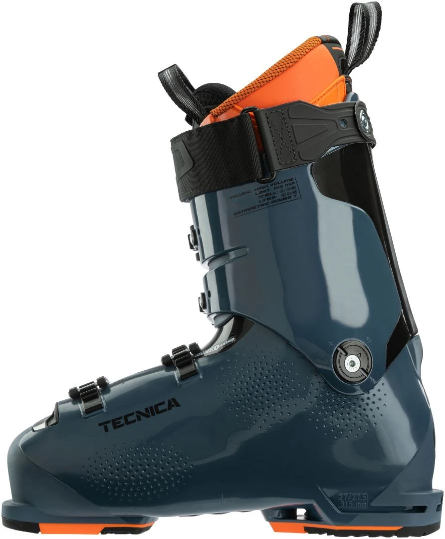 De Tecnica Mach1 120 HV 21/22 is een skischoen met een hoog volume, geschikt voor voeten met veel breedte en een hoge wreef.